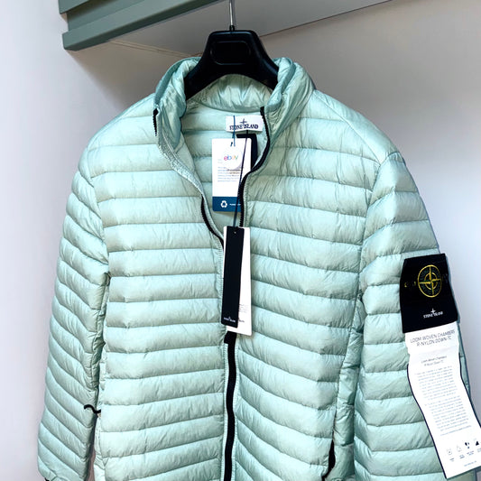 Stone Island Loom Woven Chambers R-Nylon Down-TC Full Zip Badge Jacket - Small ptp20.5”