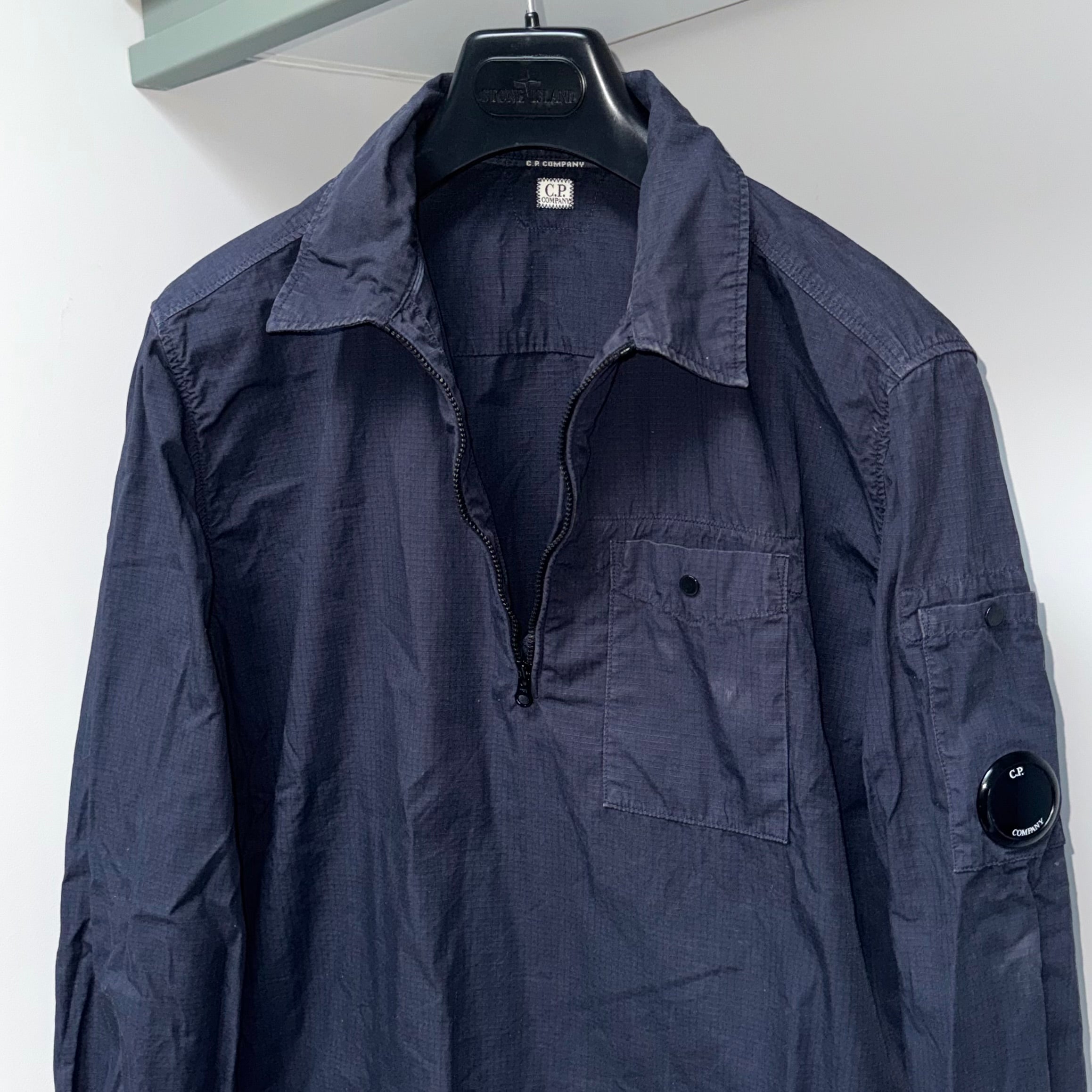 CP Company Ripstop Quarter Zip Lens Overshirt - Small ptp20.5”