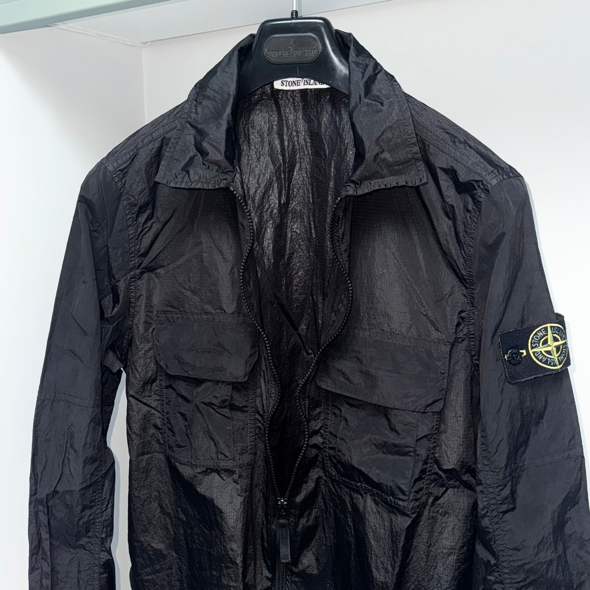 Stone Island Nylon Metal Ripstop Full Zip Badge Overshirt - Medium ptp20.5”
