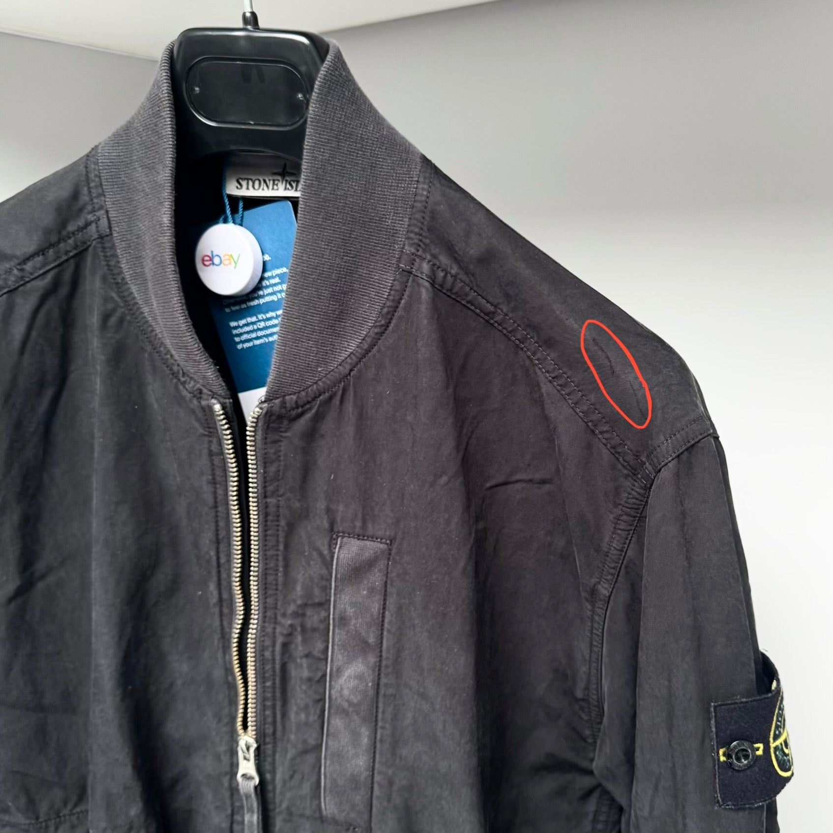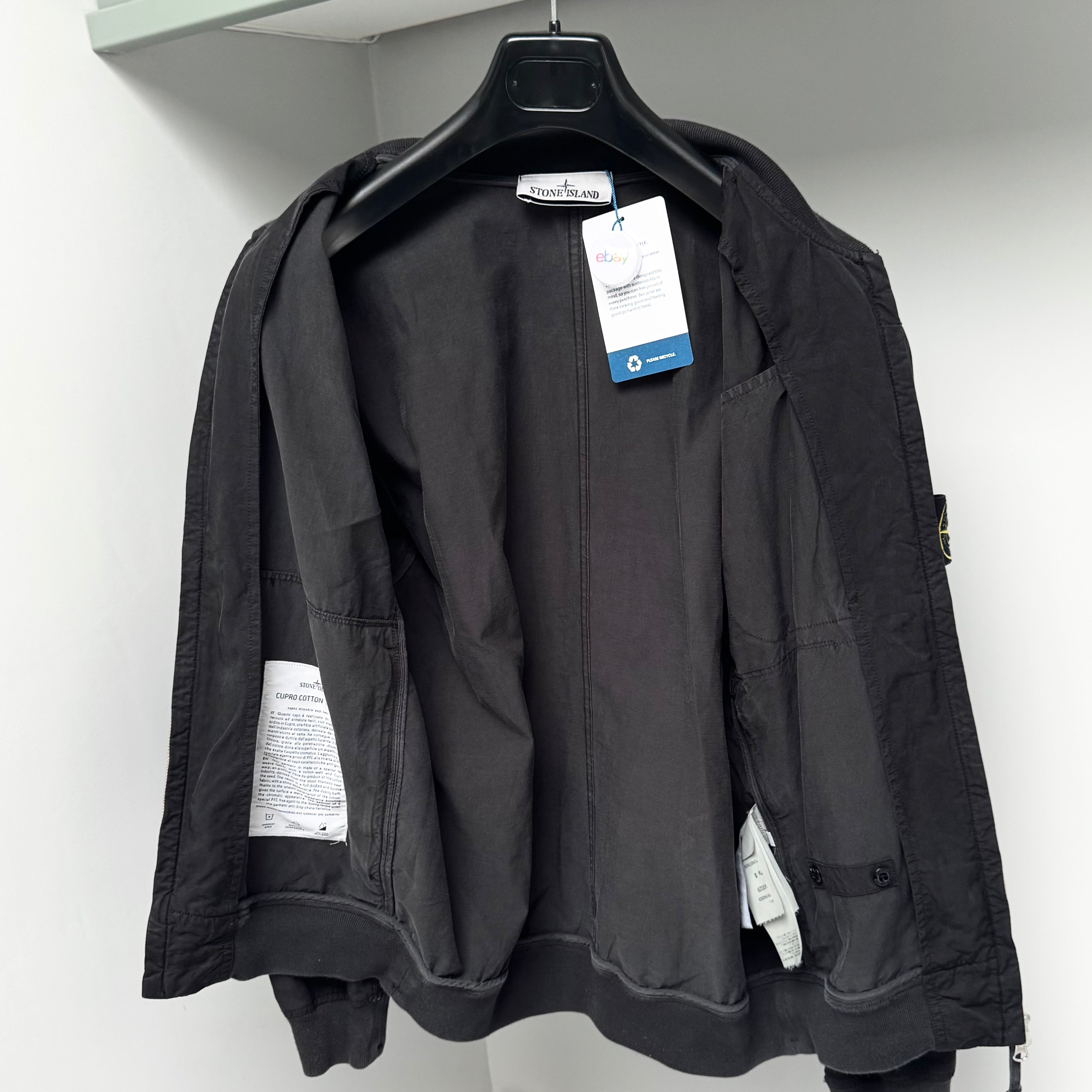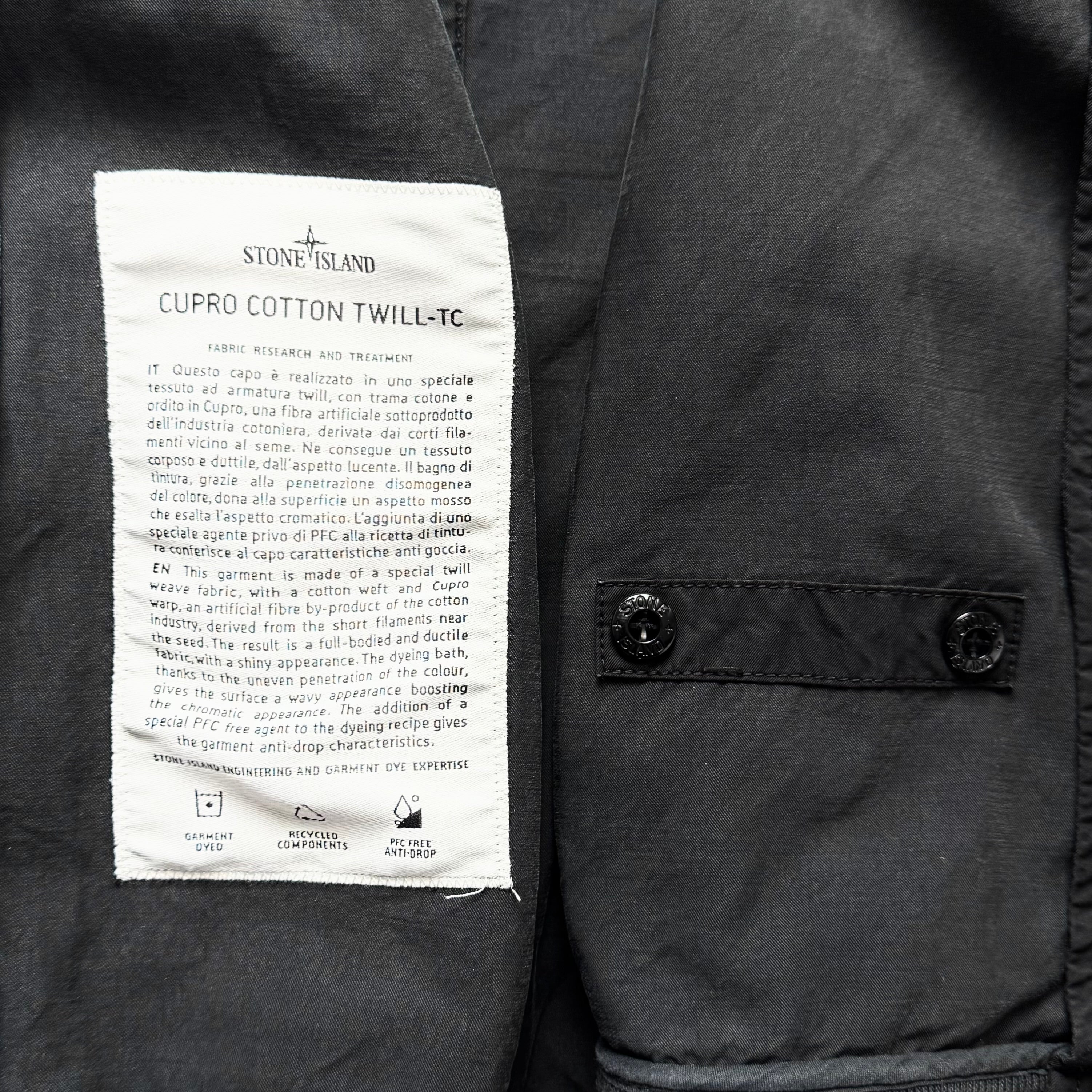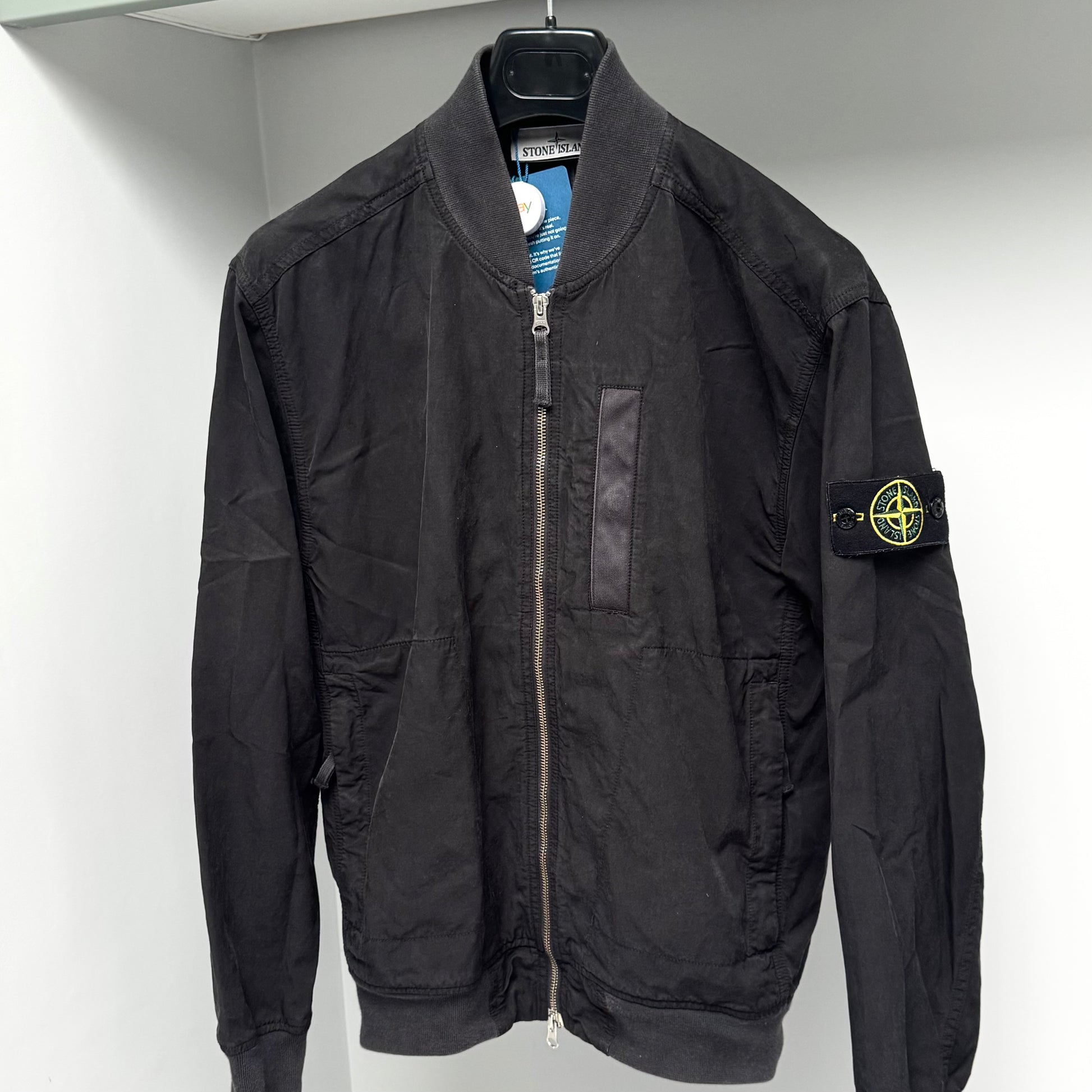 Stone Island Cupro Cotton Twill-TC Full Zip Badge Bomber Jacket - Small ptp21.5”