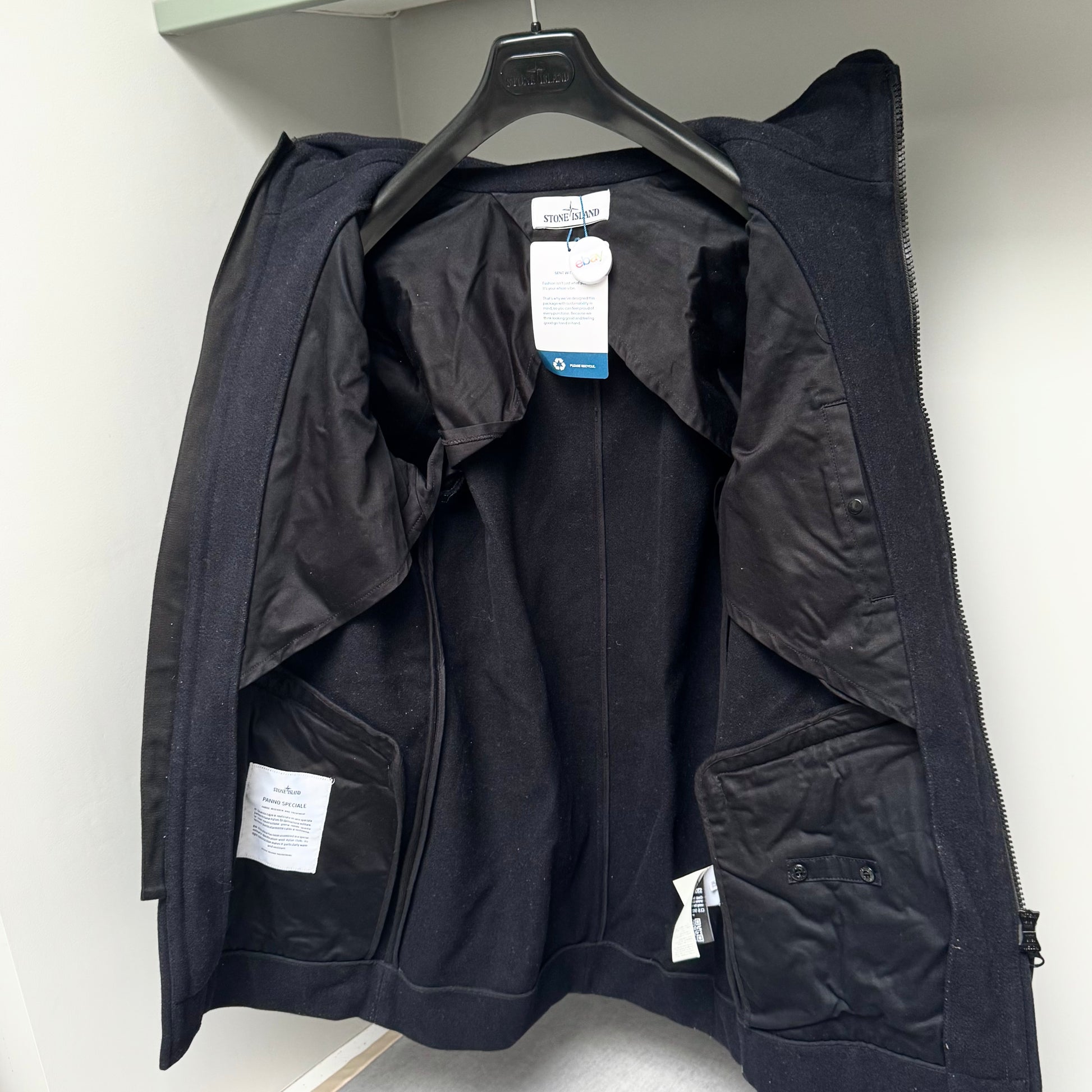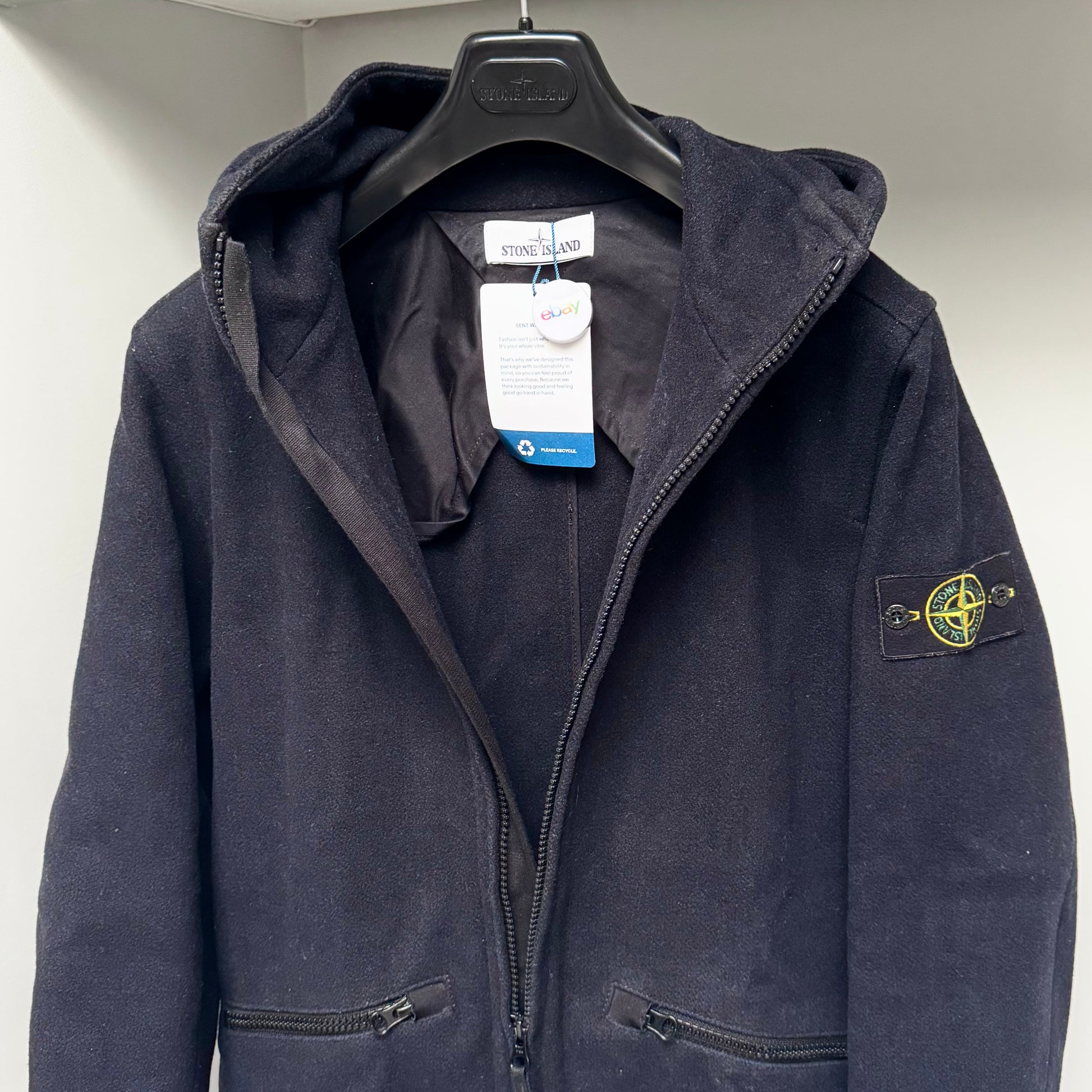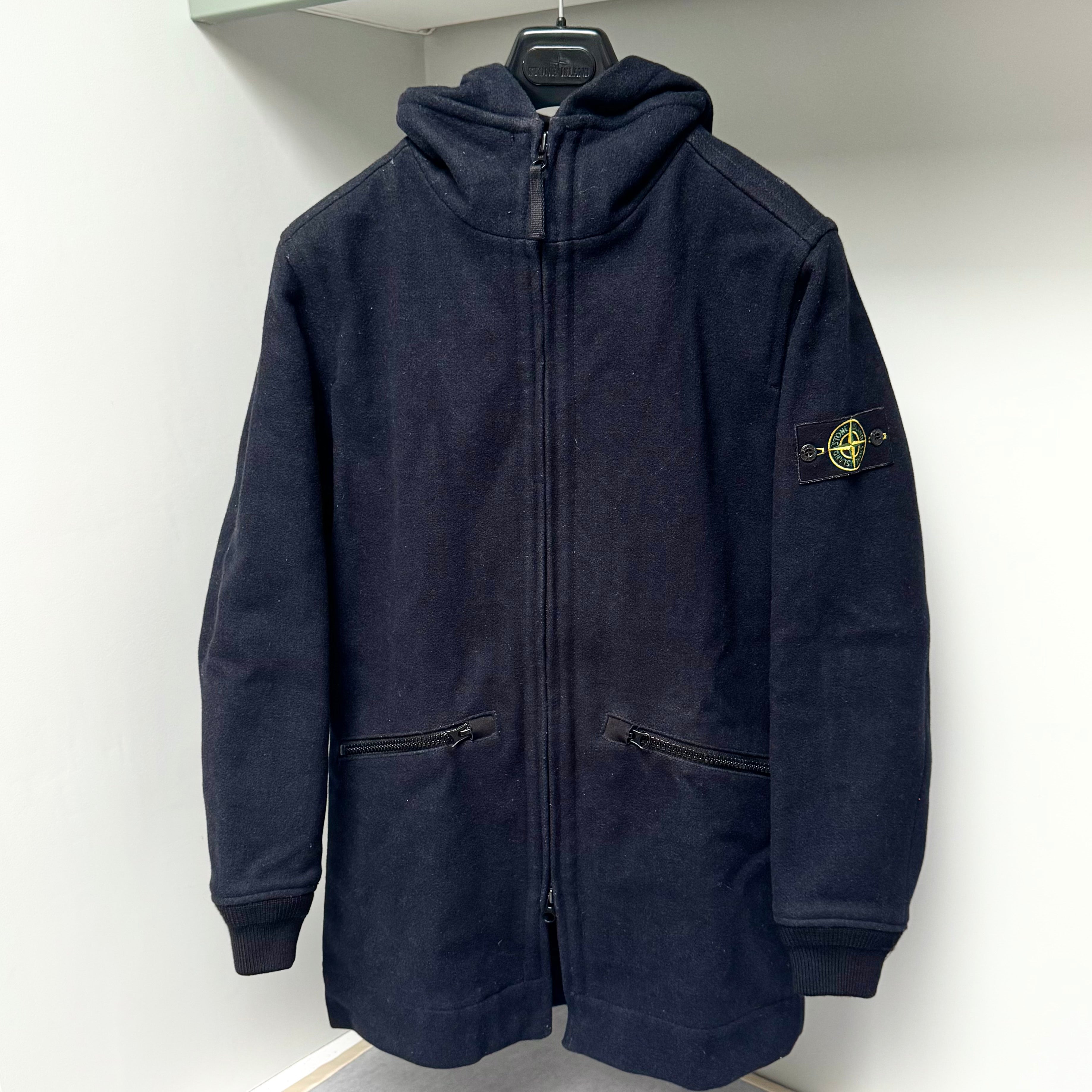 Stone Island Panno Speciale Lana Wool Full Zip Badge Duffle Jacket - Medium ptp21.5”
