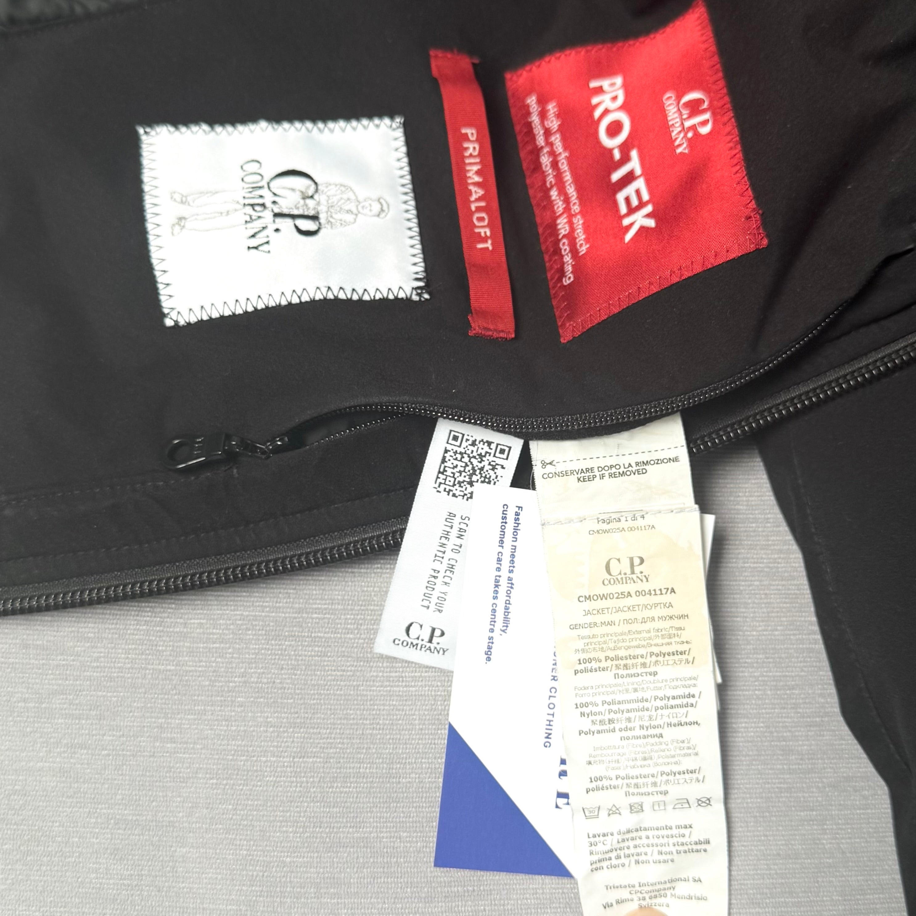CP Company Black Padded Pro-Tek Primaloft Full Zip Lens Jacket - XXL ptp24”