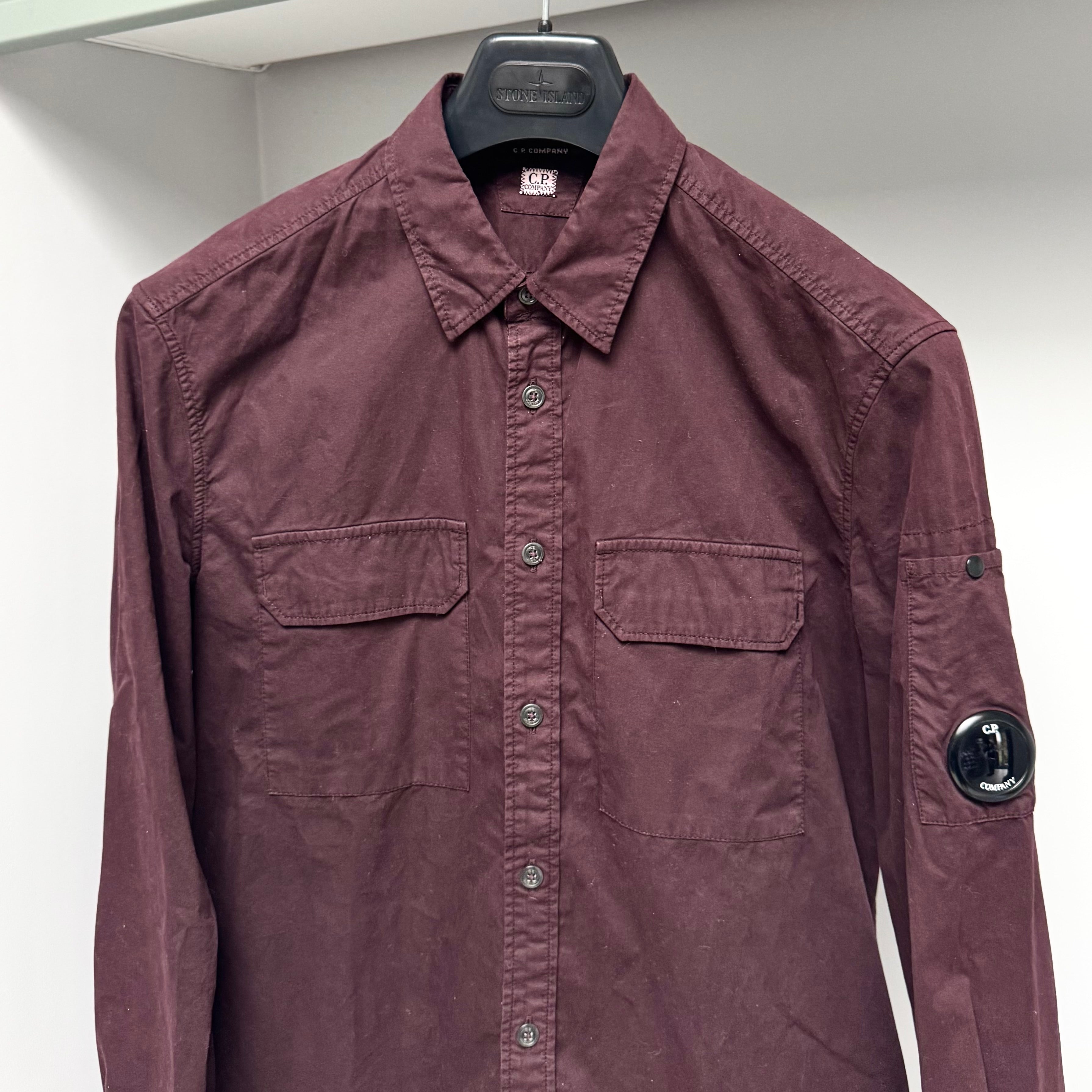 CP Company Maroon Red Button Up Lens Overshirt - Medium ptp20.5”