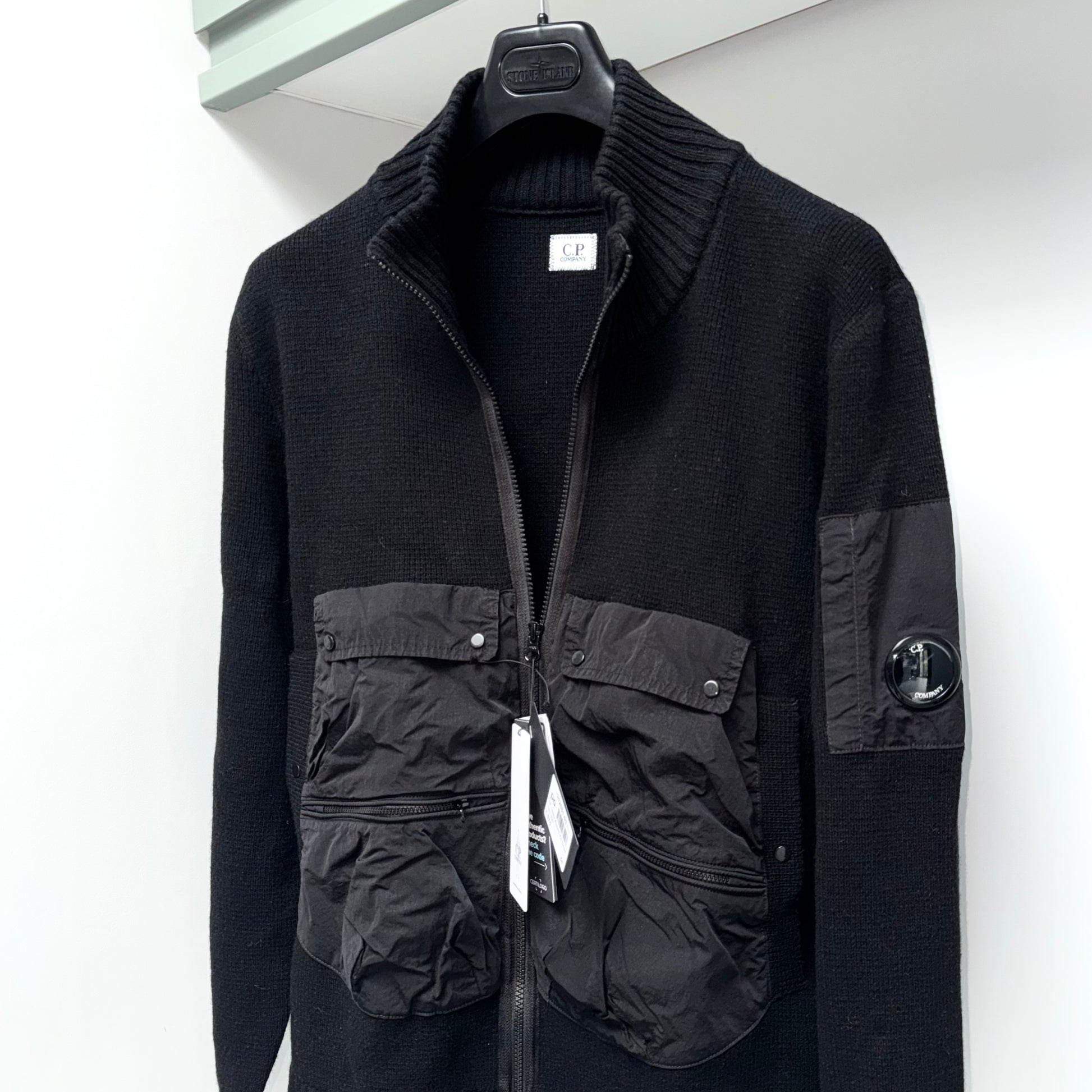 CP Company Lambswool Mixed Utility Full Zip Knitted Jumper - XXL ptp23.5”