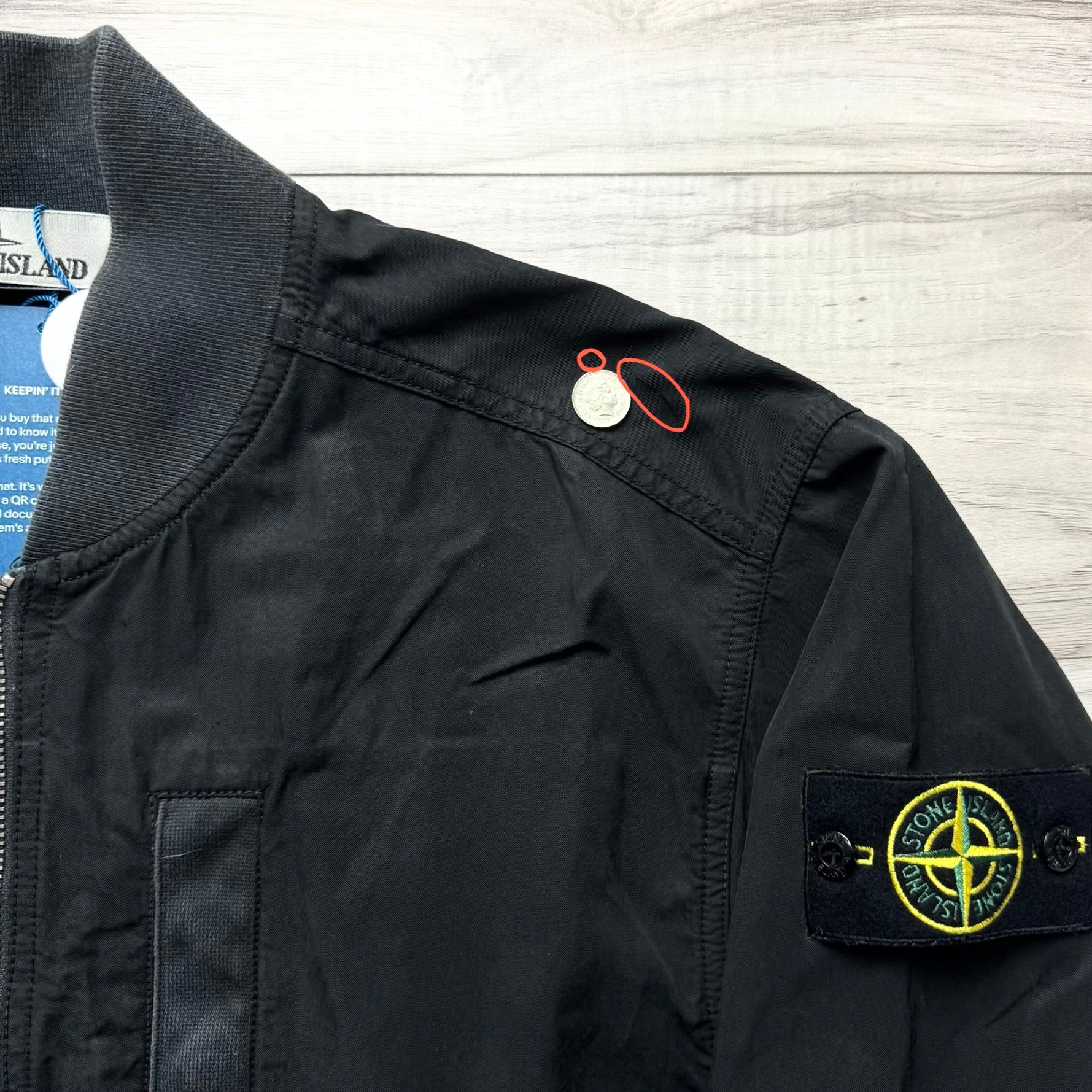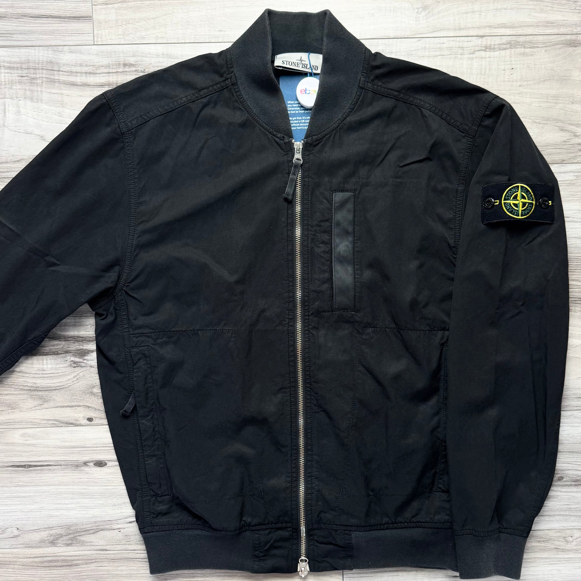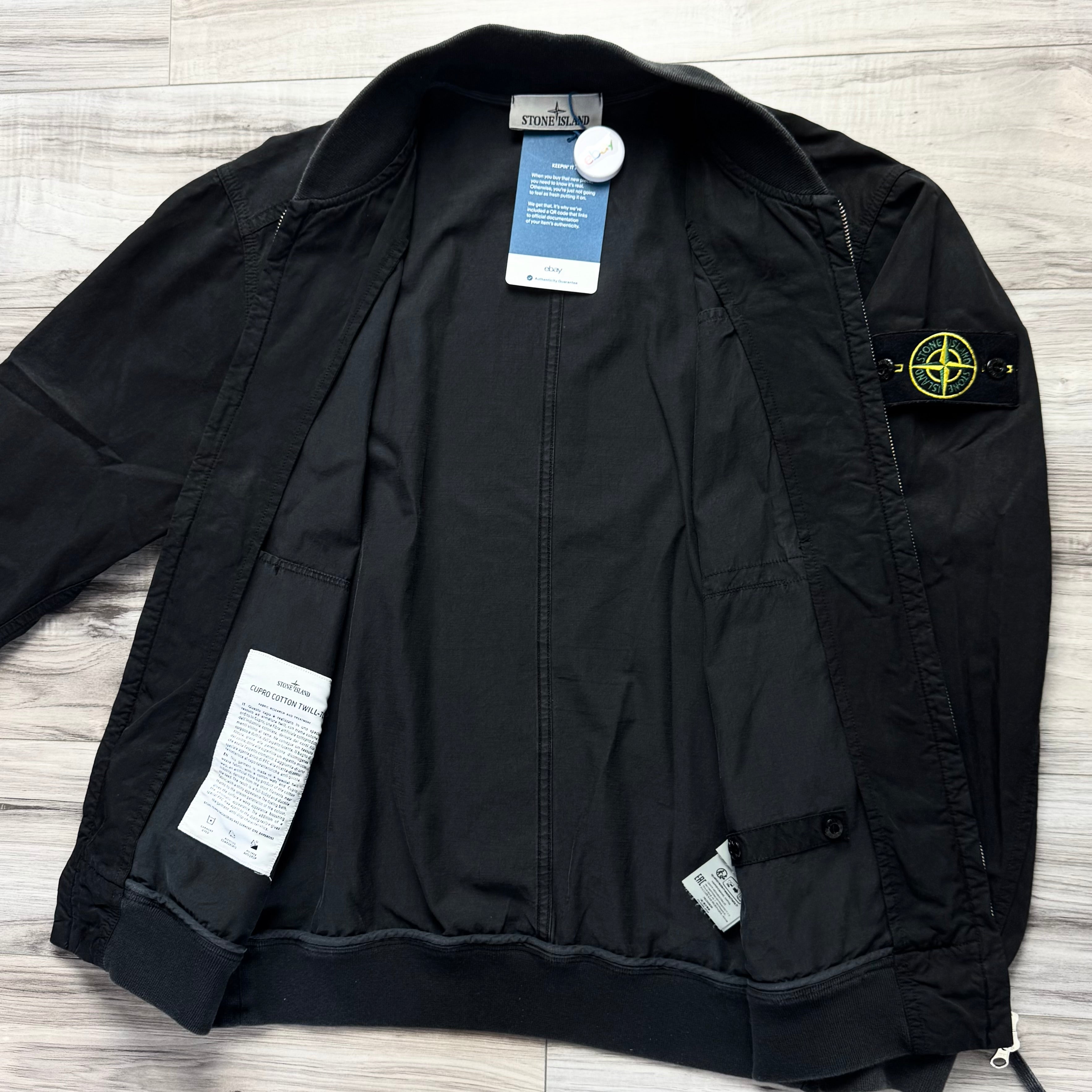 Stone Island Cupro Cotton Twill-TC Full Zip Badge Bomber Jacket - Small ptp21.5”