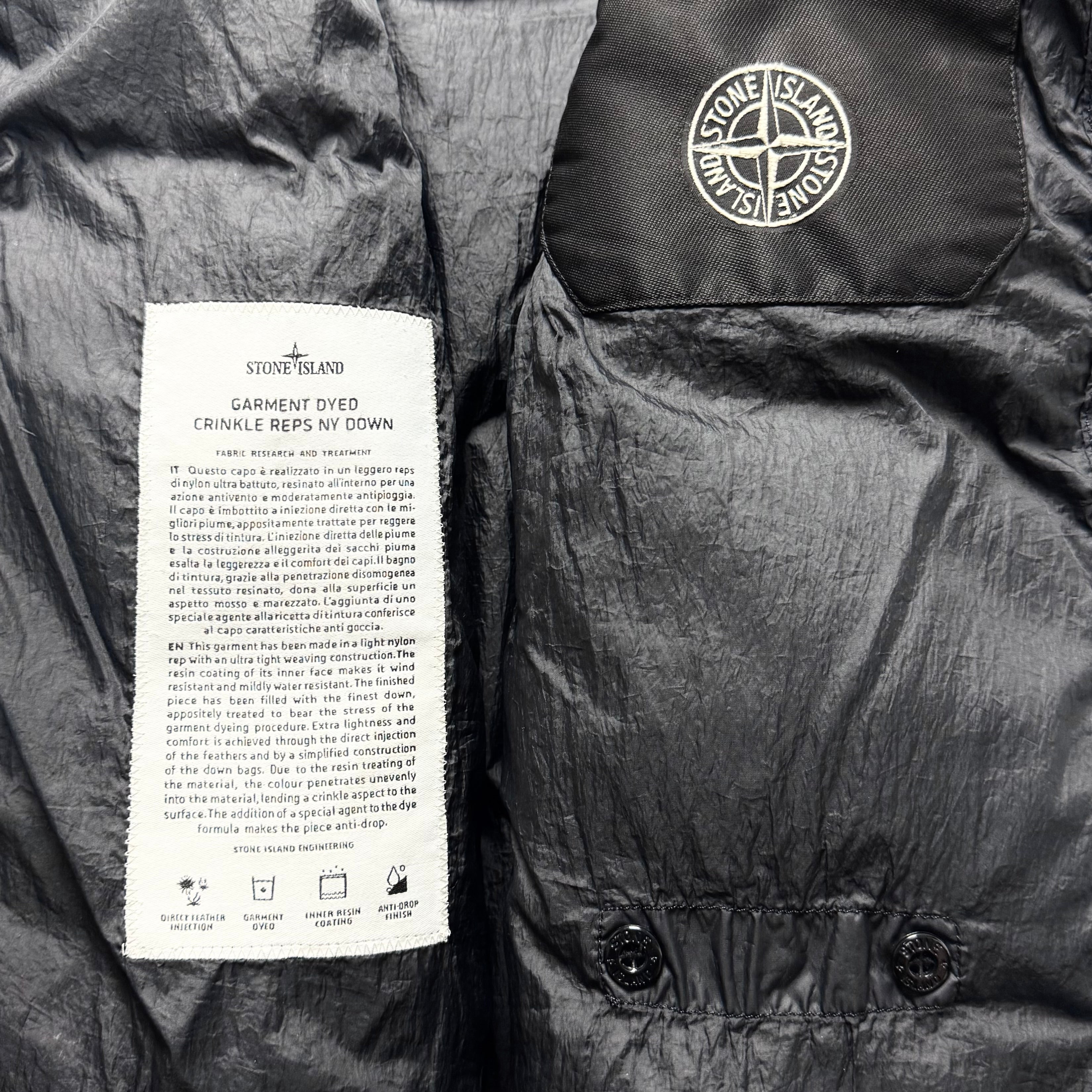 Stone Island Garment Dyed Crinkle Reps NY Down Badge Jacket - Medium ptp21.5”