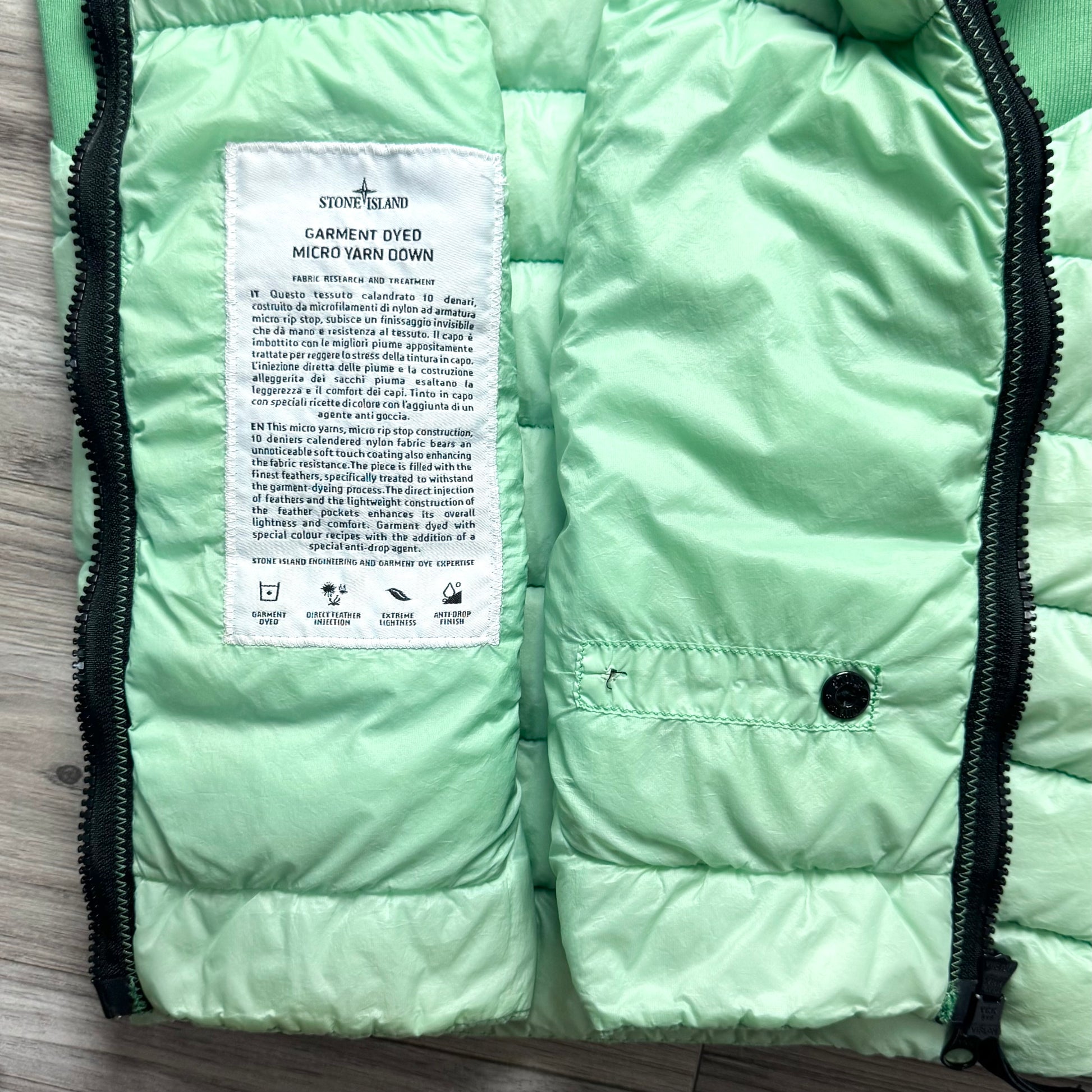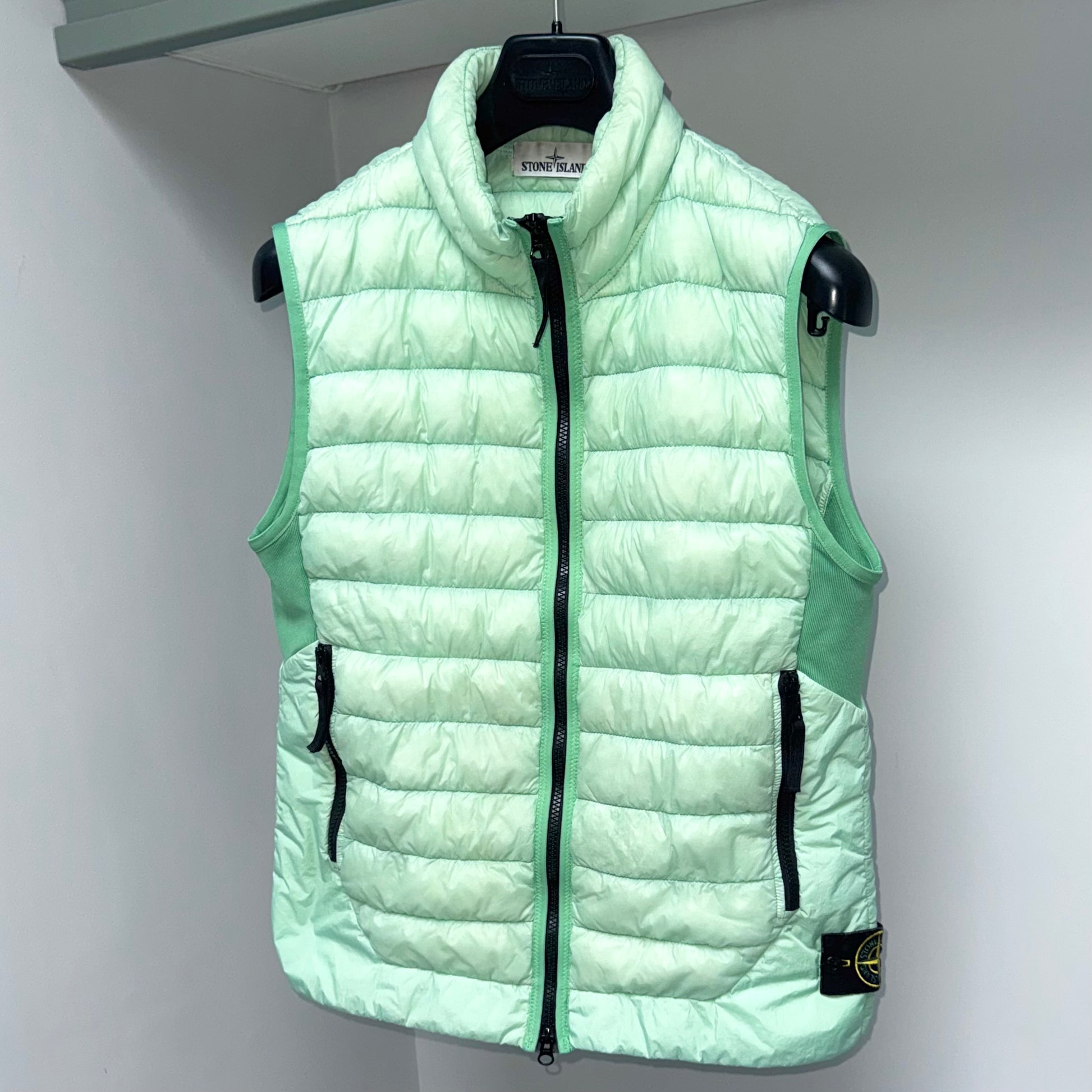 Stone Island Garment Dyed Micro Yarn Down Full Zip Badge Gilet - Small ptp19.5”