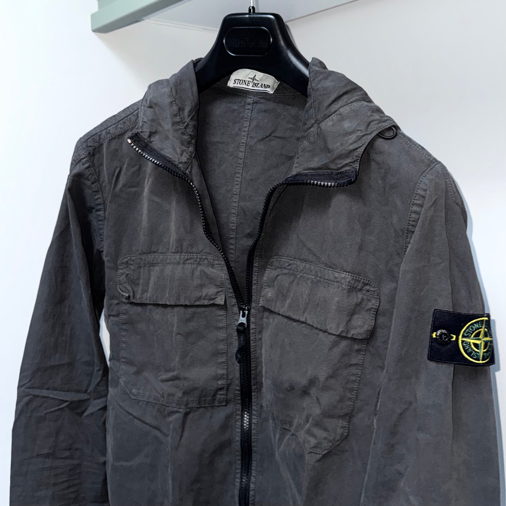 Stone Island Hooded Brushed Cotton Canvas Full Zip Badge Overshirt - Medium ptp21”