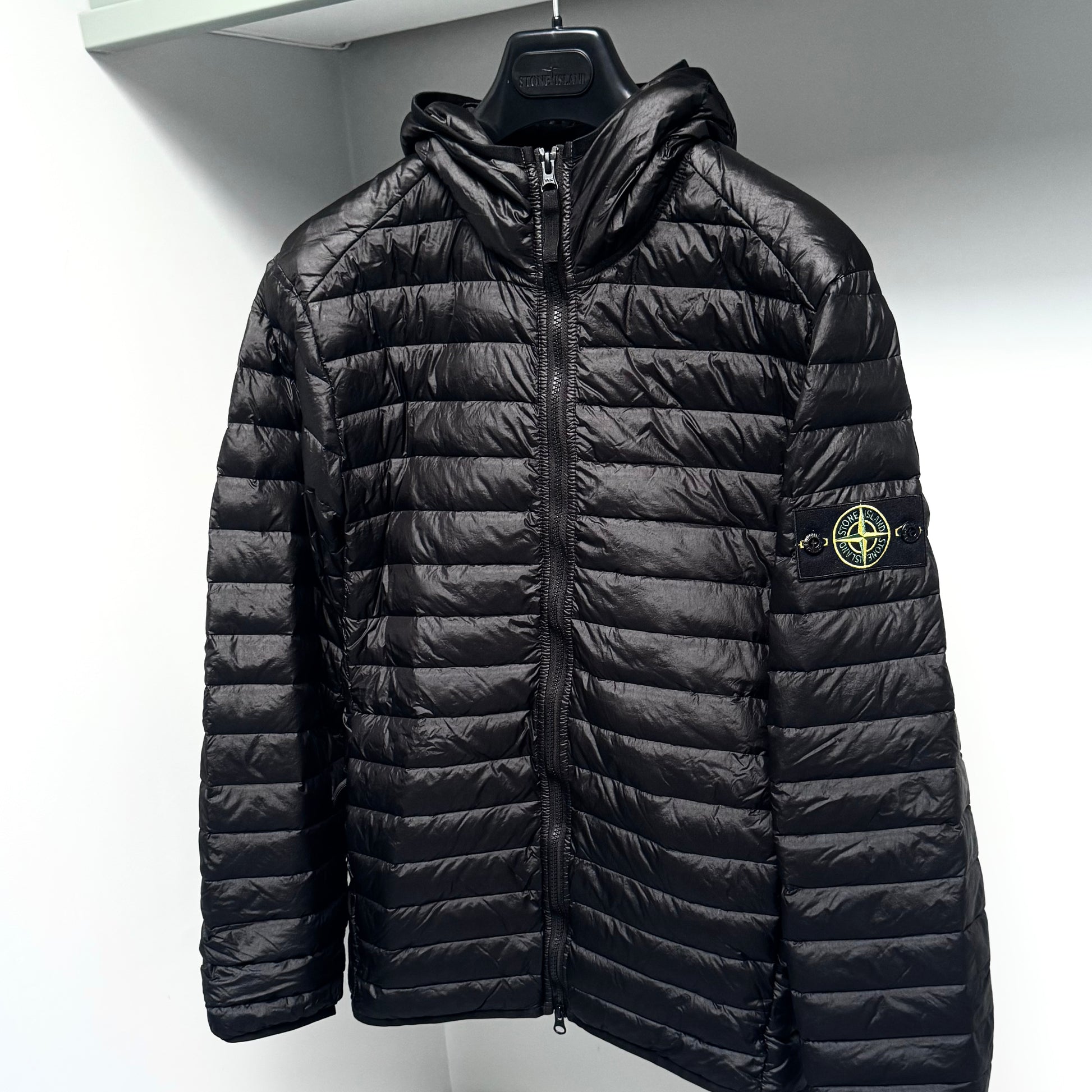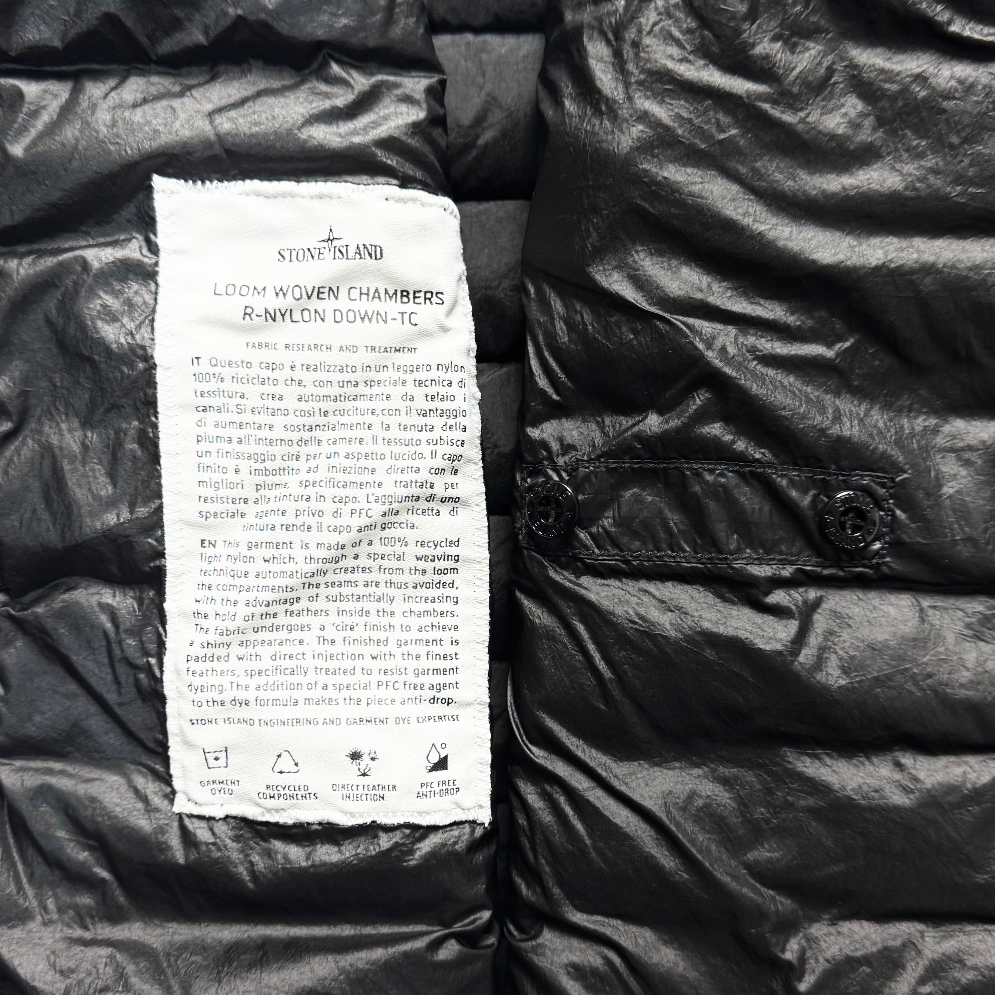 Stone Island Loom Woven Chambers R-Nylon Down-TC Full Zip Badge Jacket - Small ptp20.5”