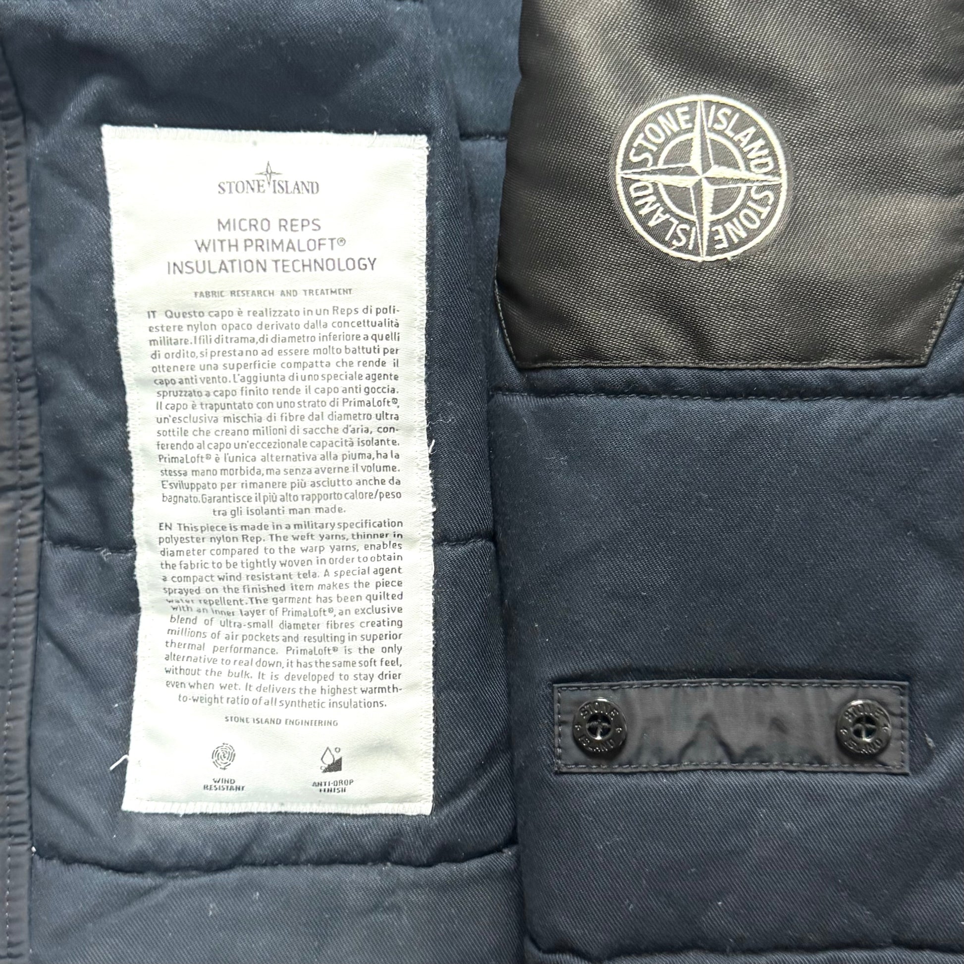 Stone Island Micro Reps With Primaloft Insulation Technology Full Zip Badge Trench Jacket - Large ptp23”