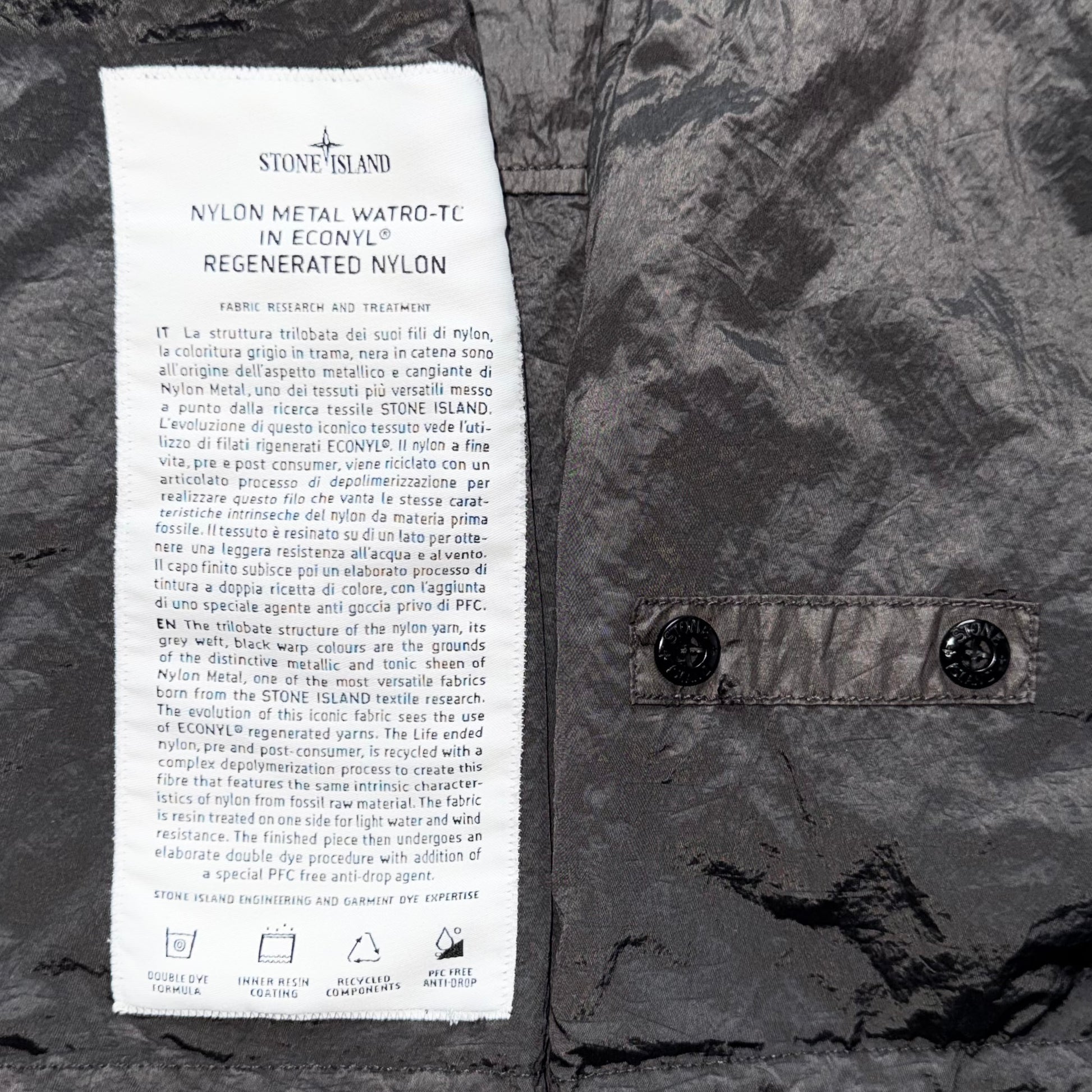 Stone Island Nylon Metal Watro-TC In Econyl Regenerated Nylon Full Zip Badge Jacket - Small ptp20.5”