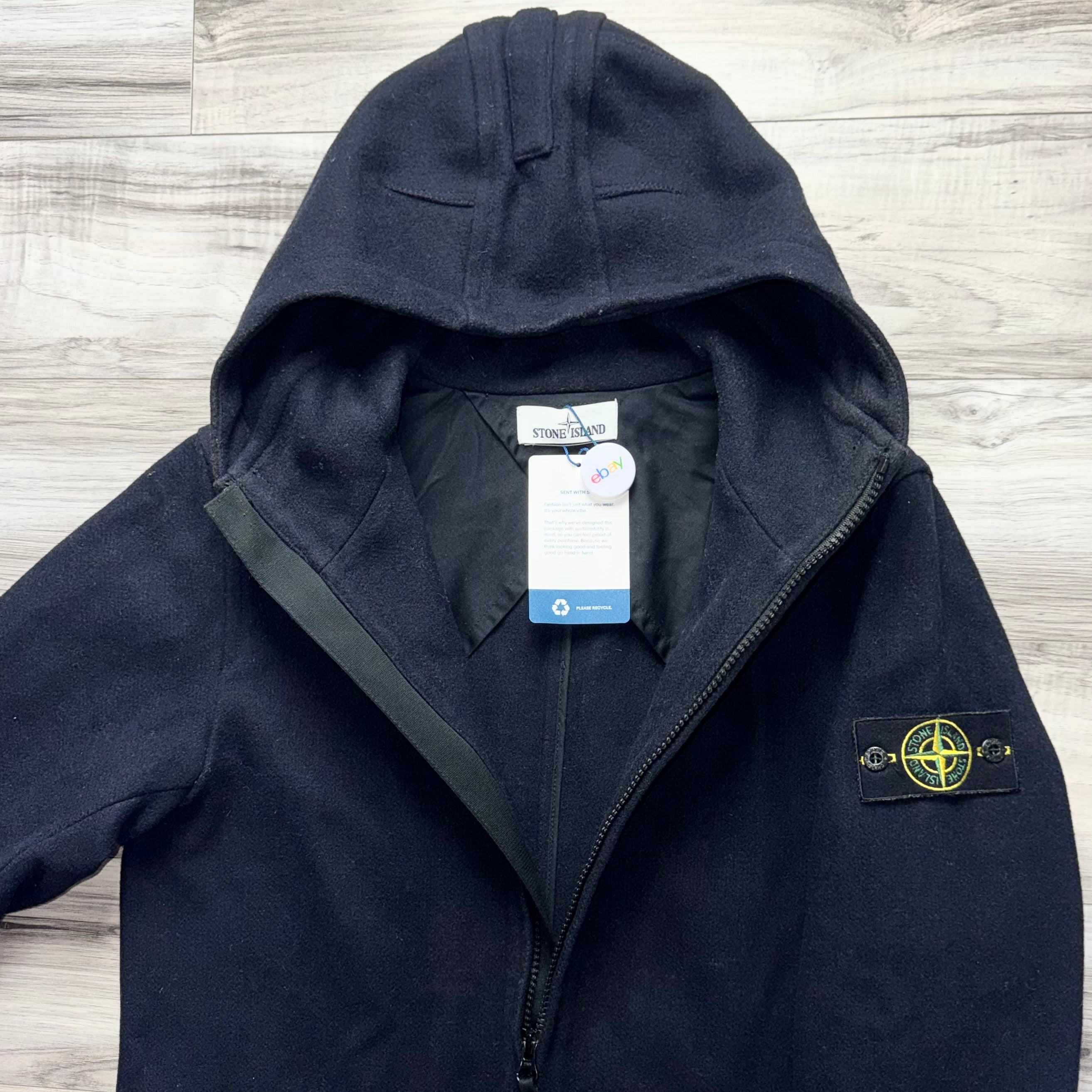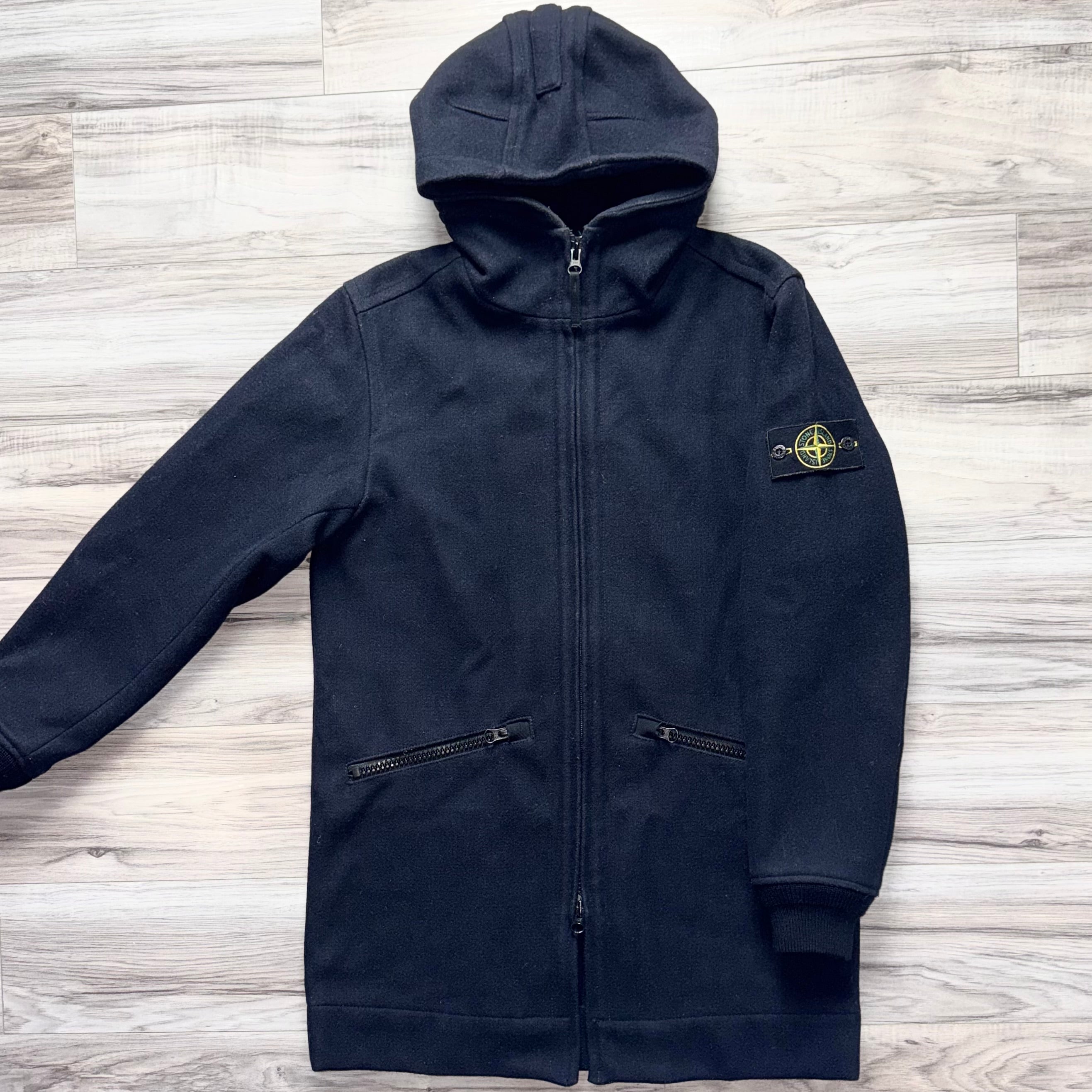 Stone Island Panno Speciale Lana Wool Full Zip Badge Duffle Jacket - Medium ptp21.5”