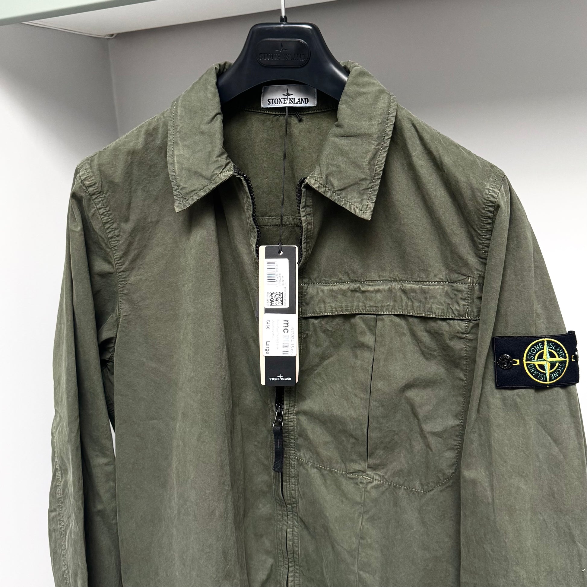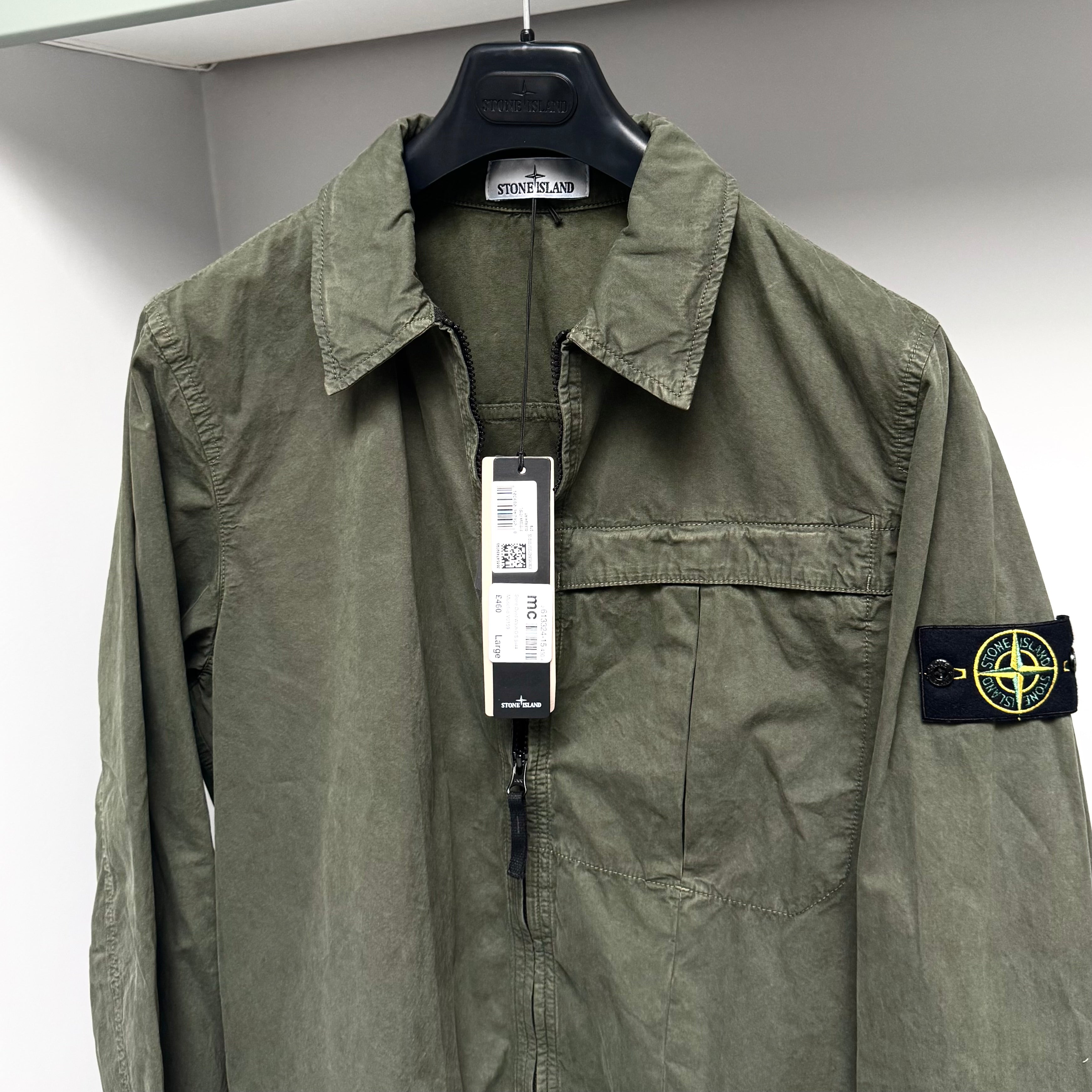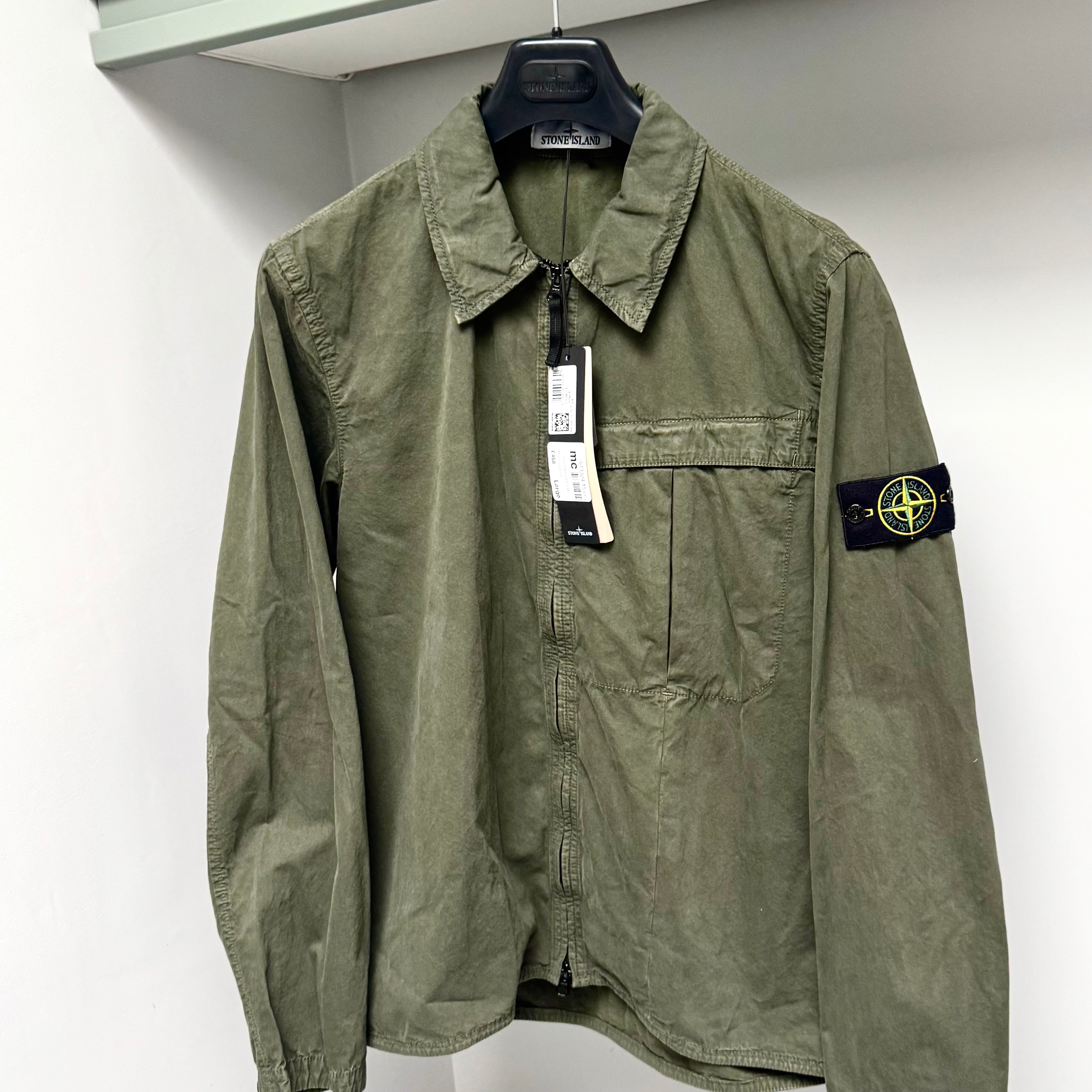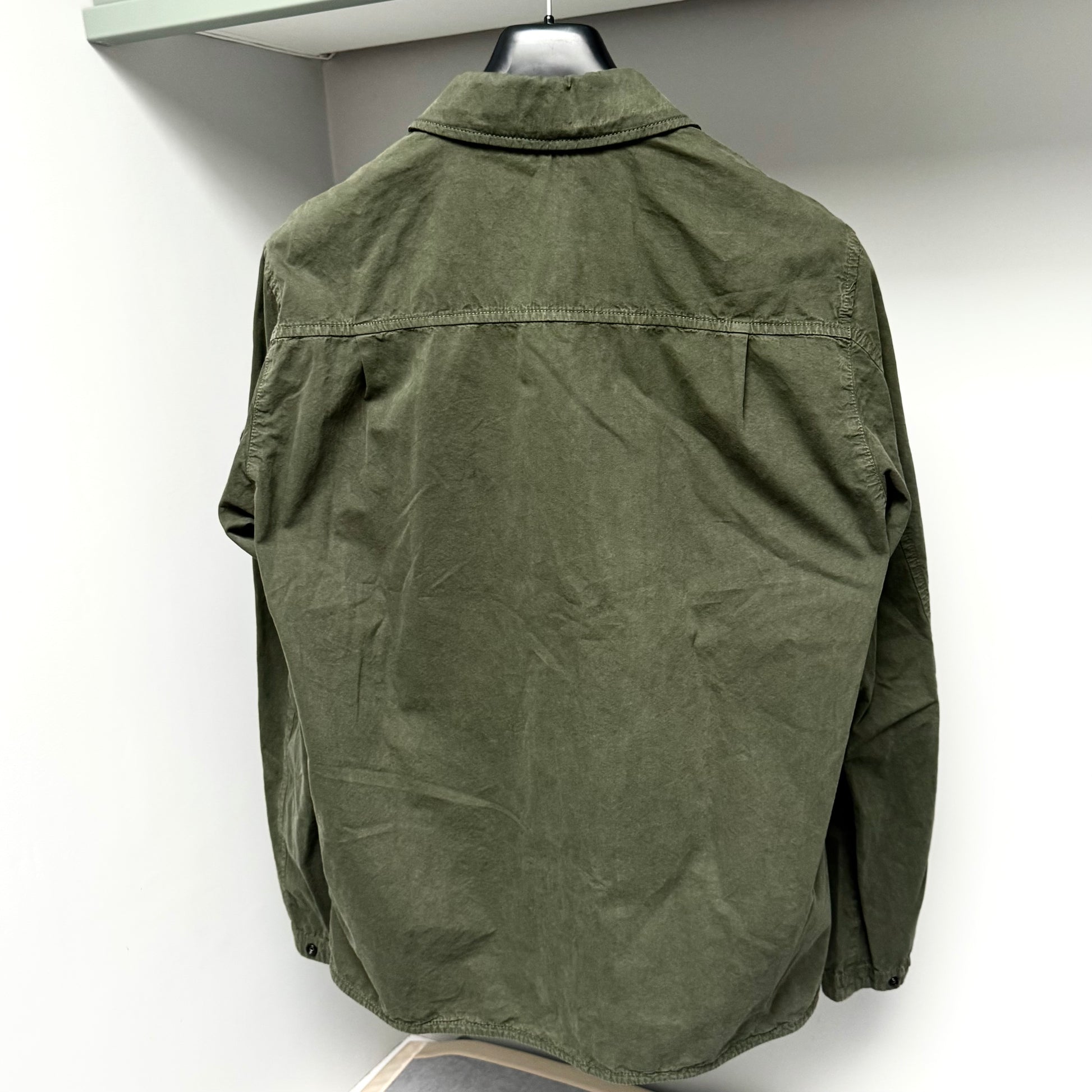 Stone Island Green Washed Brushed Organic Cotton Full Zip Overshirt - Large ptp22.5”